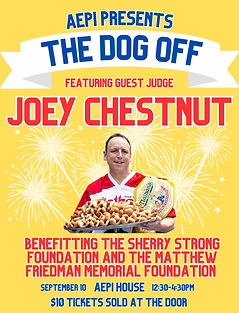 Each year, the Omicron Chapter of AEPi hosts a philanthropy hot dog eating contest, emceed by world-renowned hot dog connoisseur Joey Chestnut. All proceeds from shirt sales, sponsorships, and tickets are donated to a different charity annually. As a chapter, we’ve raised over $23,000 in donations, most recently supporting the Knox Martin Foundation for Brain Cancer Research.